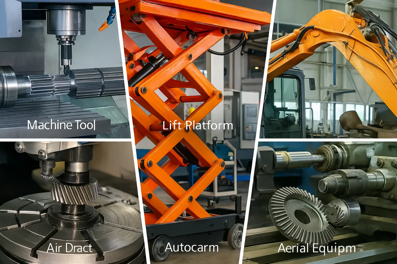 Vanlige industrielle bruksområder inkluderer også: små maskinverktøy, pakkeutstyr, løfteplattformer, blandemaskiner, landbrukskjøretøy og anleggsutstyr. I dette utstyret kan ikke all kraft sendes ut i en rett linje, og vinkelgir spiller rollen som "snu et hjørne og fortsetter å sende".