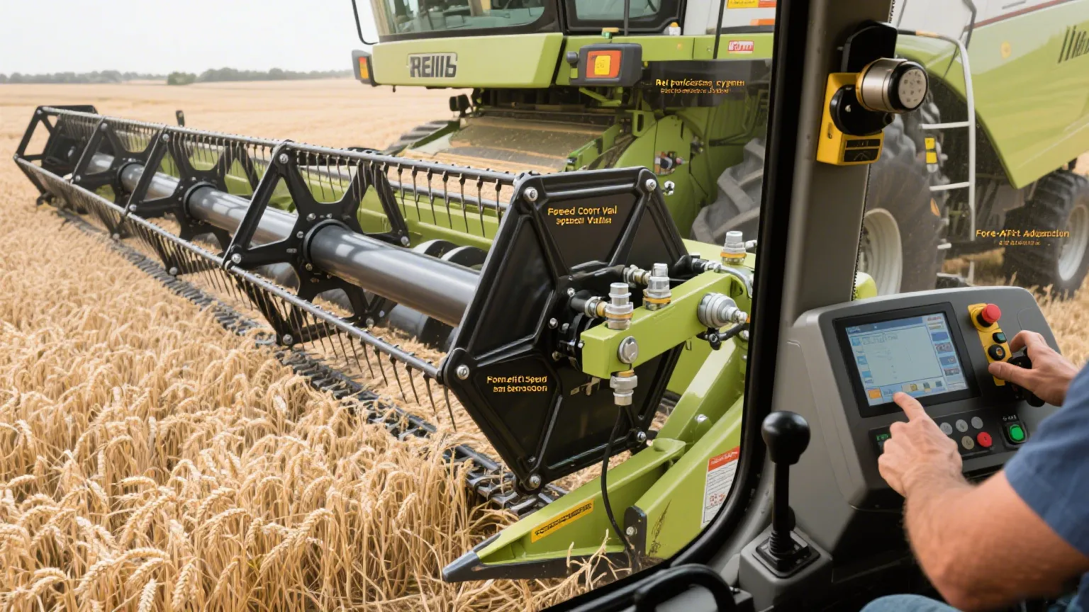 Inne i hogstmaskinen trives treskesystemet med små justeringer. I noen modeller justerer denne hydrauliske sylinderen for hogstmaskinen konkav klaring eller finjusterer deler for å sikre at selv tøffe avlinger blir strippet rene, uten å skade kornet. Det er ikke prangende, men de små justeringene gir større utbytte når det gjelder.