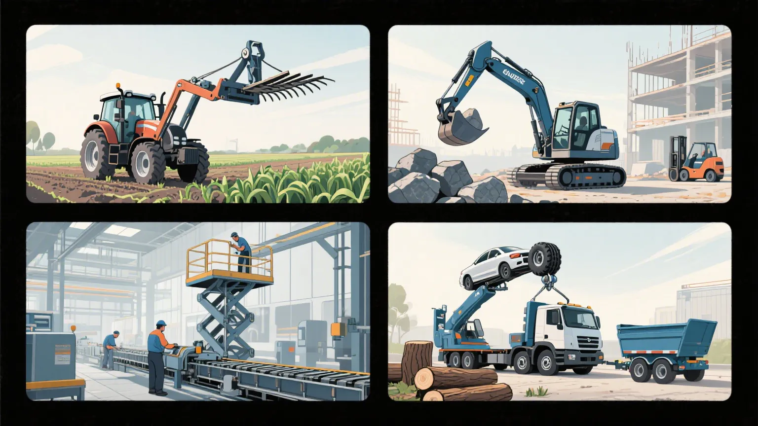 Over i konstruksjon og materialhåndtering er det like praktisk. Minilastere er avhengig av denne kraftige hydrauliske løftesylinderen for å kjøre skuffer, griper og skruer – tøffe jobber som krever jevn kraft. Små gaffeltrucker bruker det også, for å løfte og vippe masten, så paller går akkurat dit de skal. Løfteplattformer? Saksemekanismene i mindre løft er avhengige av presisjonen for å heve og senke trygt. Selv transportbånd forblir stramme og effektive, takket være denne hydrauliske løftesylinderen som håndterer strammeoppgaver uten problemer.