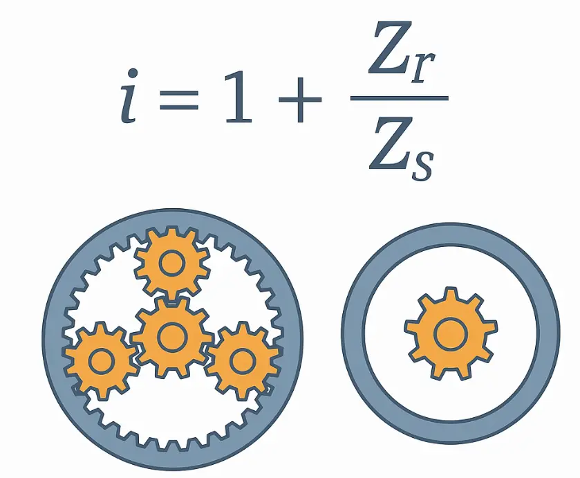 For et enkelt eksempel: Hvis antall tenner på solhjulet er 20 og antall tenner på den indre ringen er 60, så er utvekslingsforholdet:
