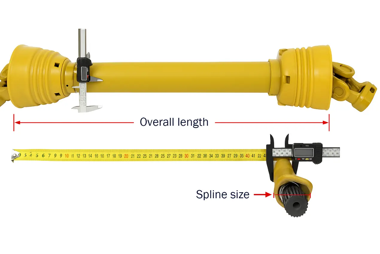 Den første tingen å bekrefte er den totale lengden på drivakselen. Denne lengden refererer til avstanden fra ende til ende av kraftoverføringsakselen i tilbaketrukket tilstand, det vil si fra ytterkanten av en gaffel til ytterkanten av den andre gaffelen, unntatt beskyttelsesdekselet. Mange brukere har en tendens til å kun måle lengden på kappen, noe som er unøyaktig.